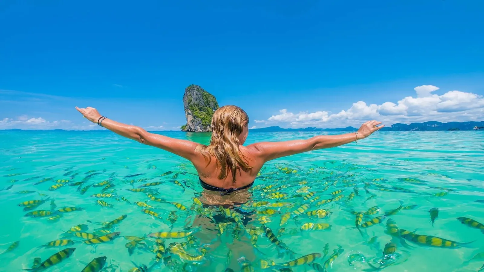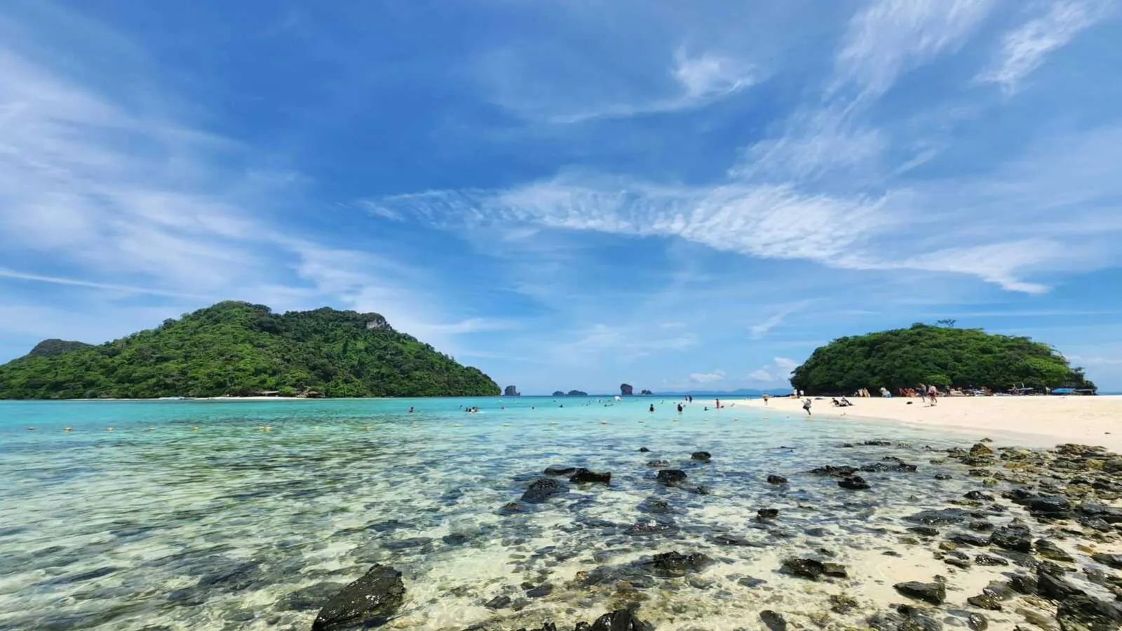 10:30 AM: Visit the famous “Thale Waek” (Separated Sea), an Unseen Thailand attraction, where a sandbar connects Chicken Island and Tup Island during low tide. Enjoy free time for photography. Continue to “Chicken Island” a limestone island in the Andaman Sea, a symbol of Krabi's coastline. Snorkel and swim at “Chicken Island” where you can encounter vibrant coral reefs.